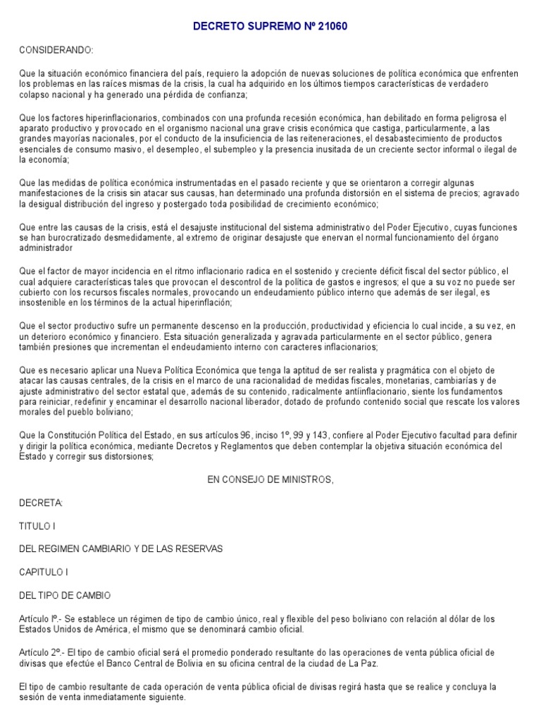 Decreto Supremo 21060 Bolivia - Decreto Supremo 21060 Pdf