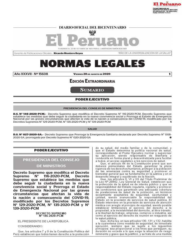 Decreto Supremo 094 Del 2020 Pcm El Peruano - Atencion Publican Decreto Que Amplia Emergencia Y Estas Son Sus Especificaciones Realidad Noticias Relevantes Del Peru Martin Vizcarra Elecciones 2021 Covid 19 Reactiva Peru Arranca Peru Cuarentena Focalizada