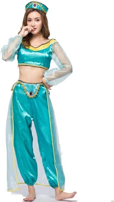 Disfraz De Genio Aladdin Mujer - Agoky Disfraz De Princesa Jazmin Para Mujer Chica Cosplay Traje De Danza Del Vientre Lentejuelas Conjunto Top Pantalones Diadema Fiesta Halloween Amazon Es Ropa Y Accesorios