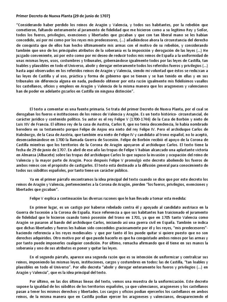 Decretos De Nueva Planta 1707 - Decretos De Nueva Planta Historia En Comentarios