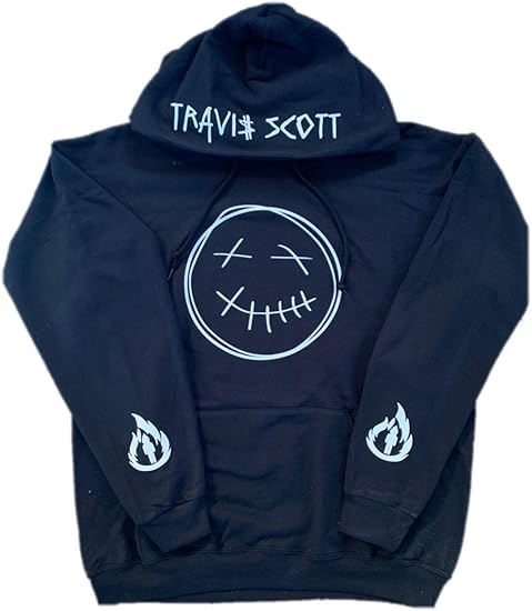 Travis Scott Happy Face Logo - Travis Scott Hoodie Dead Smiley Face With Name On Hood And La Flame On Sleeves White Print Medium Amazon Ca Clothing Accessories
