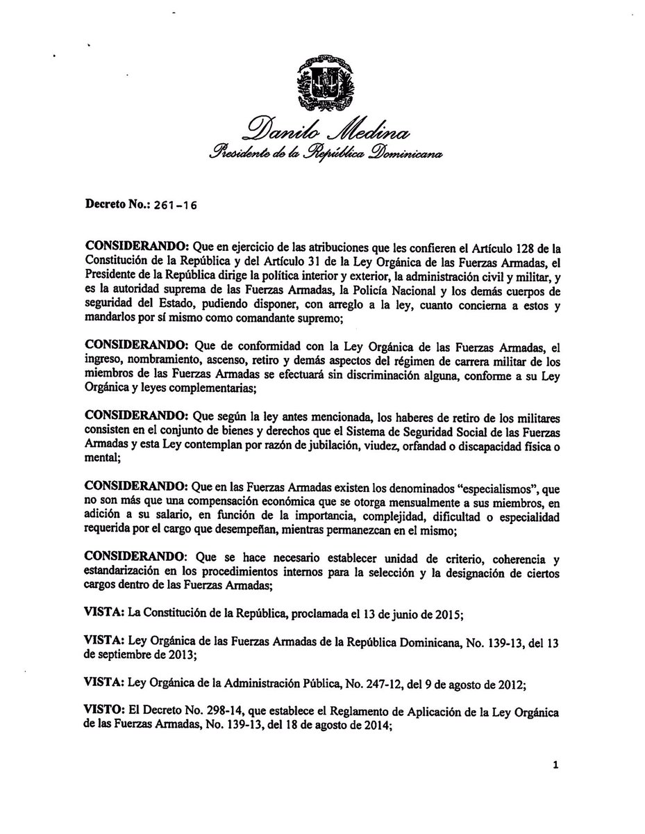 Decreto Ley 261 - Rodriguez Marchena Twitter Àªªàª° Decreto 261 16 Presidente Danilo Medina Instruye A Comandantes Generales De Las Fuerzas Armadas Sobre Procedimiento Para Designaciones Https T Co Miyjoibk3e